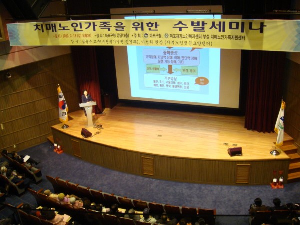 마포구청대강당에서 치매세미나를 개최하였습니다.