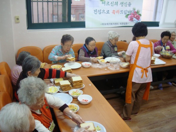 맛있는 샌드위치를 어르신들이 직접 만들어 먹는 재미~~