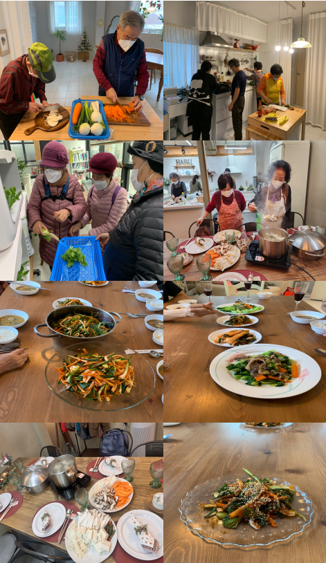 전 회기에 어떤 요리를 할지 조원들끼리 상의하여 요리 메뉴를 결정하였고 어르신들께서 청경채를 이용하여, 잡채, 겉절이, 굴소스 볶음, 샐러드, 샤브샤브 등 다양한 음식들을 하였습니다.