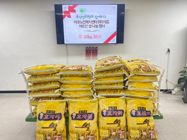 사회복지법인 용산상희원에서 쌀 20kg 33포를 후원해 주셨습니다.