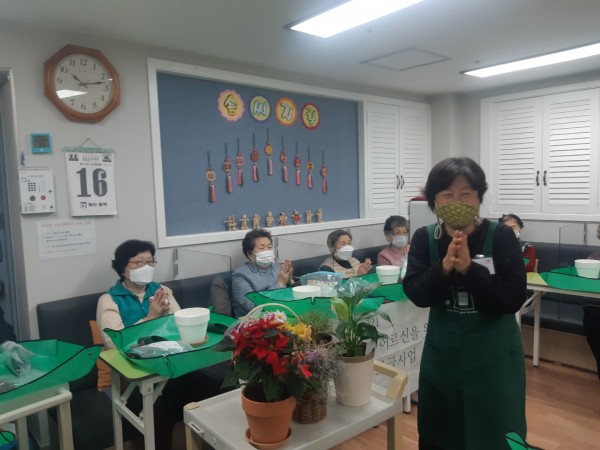 원예치유 활동 덕분에 분갈이를 많이 해보셔서 금방 예쁜 화분이 만들어 졌습니다.