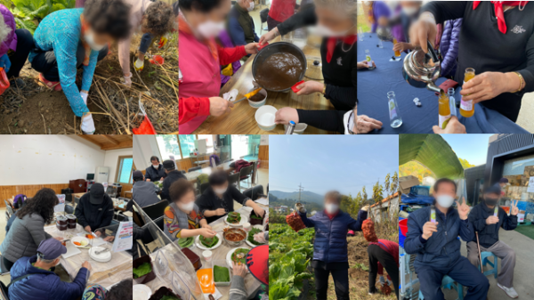 이어서 진행되는 도토리묵 만들기, 깻잎 김치 만들기, 참기름 만들기를 4인 1팀으로 진행하니 같은 팀의 어르신들은 어느새 단짝친구가 되어 있었습니다.