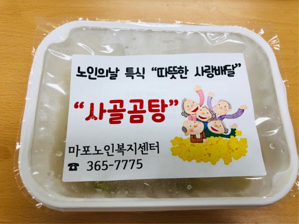 마포노인복지센터는 9월 29일 노인의 날을 맞이하여 저소득 및 홀로 사는 대상 어르신들의 경제적 부담 경감 및 풍성한 밑반찬 지원을 위해 "사골곰탕"를 제공해드렸습니다!
