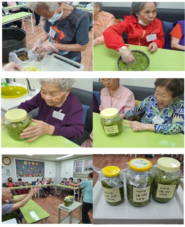까끌한 껍질을 벗기고 주물주물 어르신들의 손맛으로 예쁜 키위청이 만들어졌습니다.