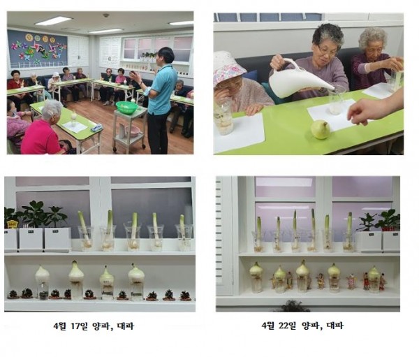 센터에 파와 양파가 생긴 후 어르신들 본인의 파, 양파가 얼마나 자란지 관심 가져하십니다.