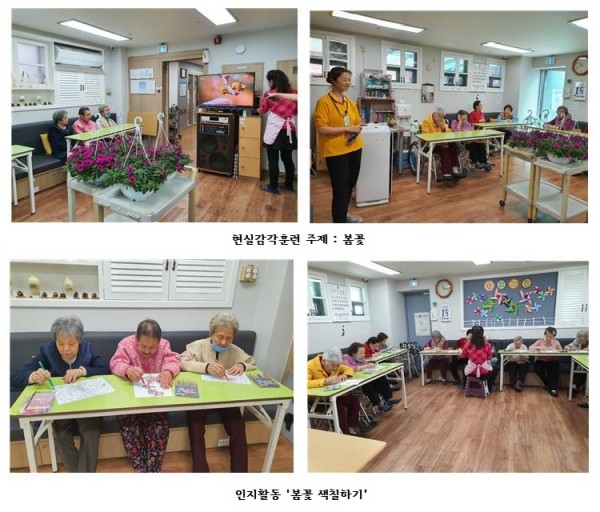 이어진 인지활동 시간에도 봄꽃을 주제로 예쁜꽃을 색칠해 봅니다.