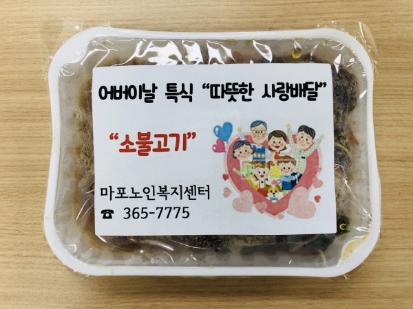 마포노인복지센터는 5월 7일 어버이날을 맞이하여 저소득 및 홀로 사는 대상 어르신들의 경제적 부담 경감 및 풍성한 밑반찬 지원을 위해 "소불고기"를 제공해드렸습니다!