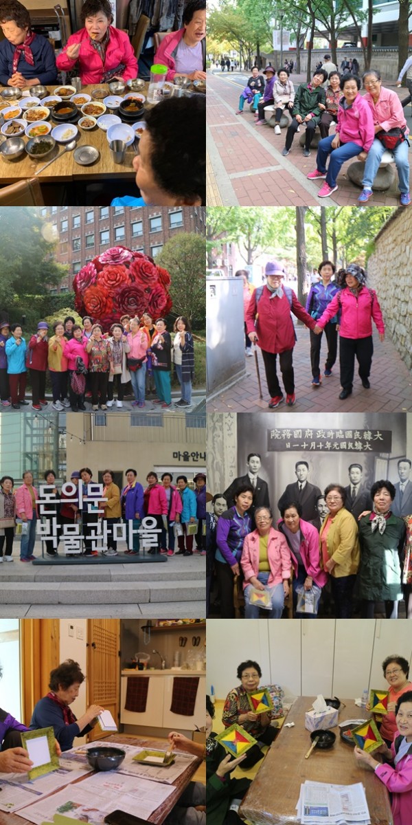 이후 돈의문박물관마을로 이동하여 예전 풍경을 재현해놓은 마을을 구경했습니다. 그리고 재밌는 한지 공예까지 체험한 어르신들이 "아주 호강하네요. 이런 한지 공예는 처음 해봐요."라고 말씀하시며 어린 시절로 돌아간 듯 소중한 추억을 만들었습니다.