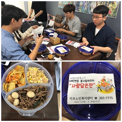 대학 연합 동아리인 '이루어드림'에서 어르신들께 드릴 밑반찬을 직접 만들어 센터에 방문해주셨어요~