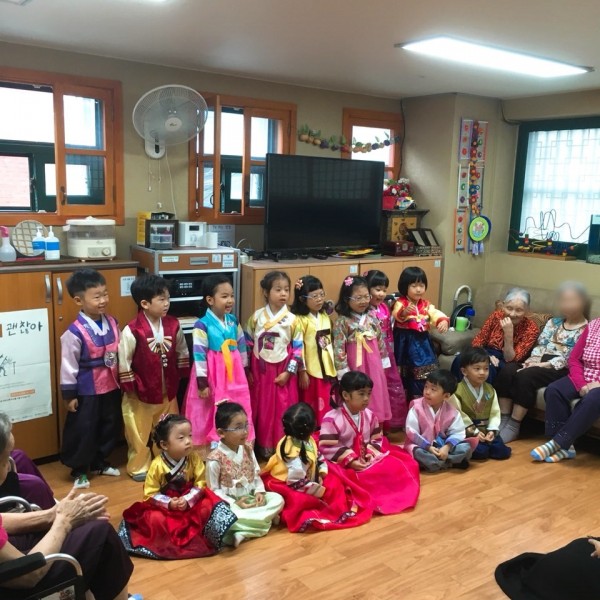 내용: 한가위 명절을 맞이해서 공덕 어린이집 원아들이 요양시설을 방문하였습니다.