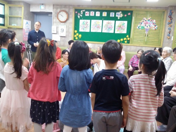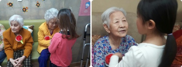 내용: 공덕 어린이집 원아들이 어버이날을 기념하여 위안 공연과 함께 어르신들에게 카네이션을 달아 드렸습니다.