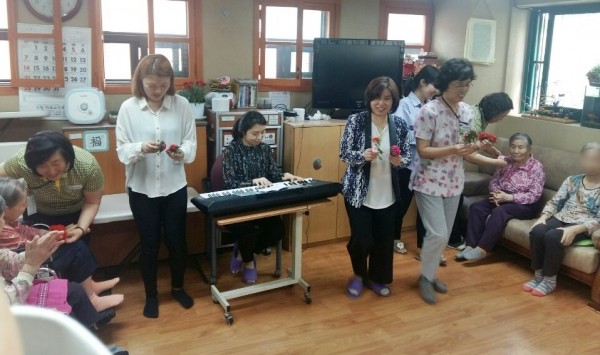데이케어센터와 요양시설 어르신들에게 노래와 함께 카네이션을 달아드렸습니다.