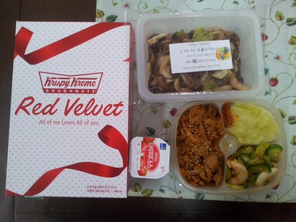 사진과 같이 소불고기와 후원물품(크리스피도넛), 밑반찬과 부식을 지원하였습니다.