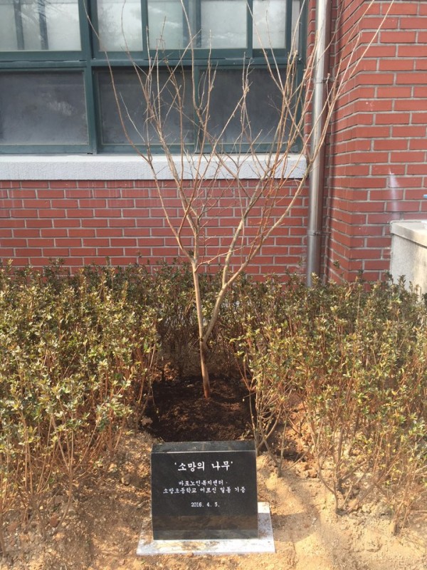 소의초등학교 학생들을 위해 2015년 부터 소망초등학교 어르신들이 직접 모금한 후원금으로 구입한 배롱나무를