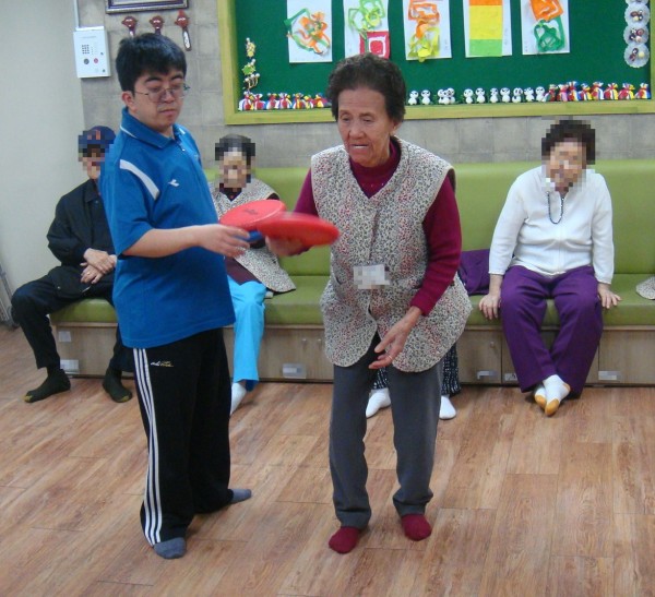 던진 원반이 의자 위에 착 놓일 때 어르신들은 기분이 좋습니다.