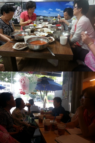 우리센터에서 어르신들의 식사준비를 돕는 자원봉사자 은빛도우미 선생님들을 모시고