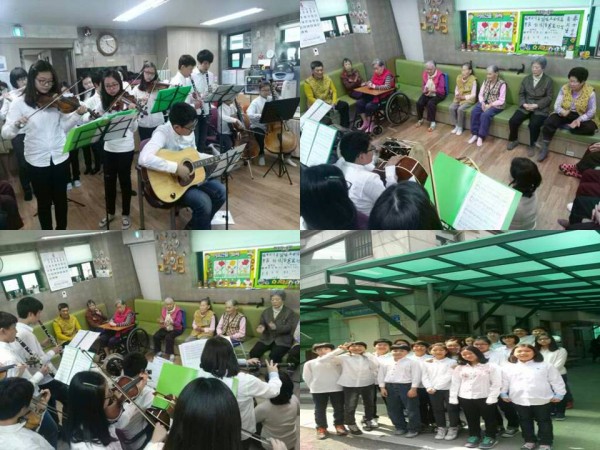 초등학생, 대학생들의 다양한 악기 연주가 어르신들을 흥겹게 하였습니다.