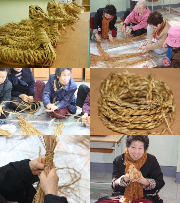 짚풀을 가지고 새끼를 꼬고, 작품을 만드시더군요~~~ ^^:;