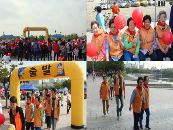 주야간시설,요양시설 거동이 가능한 어르신과 함께 마포 치매걷기대회를 참여 하였습니다.