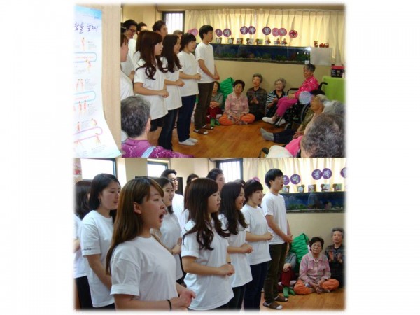 지난 5월 성균관대학교 학생 봉사자분들이 오셔서 어르신들을 위해 시설 청소와 합창 등 레크레이션 진행을 해주었습니다.