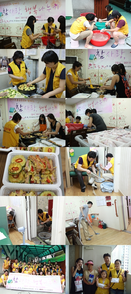 이번 7/23(토)에는 더운날씨의 중복을 맞아 어르신들께 맛있는 삼계닭과 꼬치전, 호박전, 그리고 모기약을 전달해드리는 "참사랑, 행복나누기" 행사를 진행하였습니다.