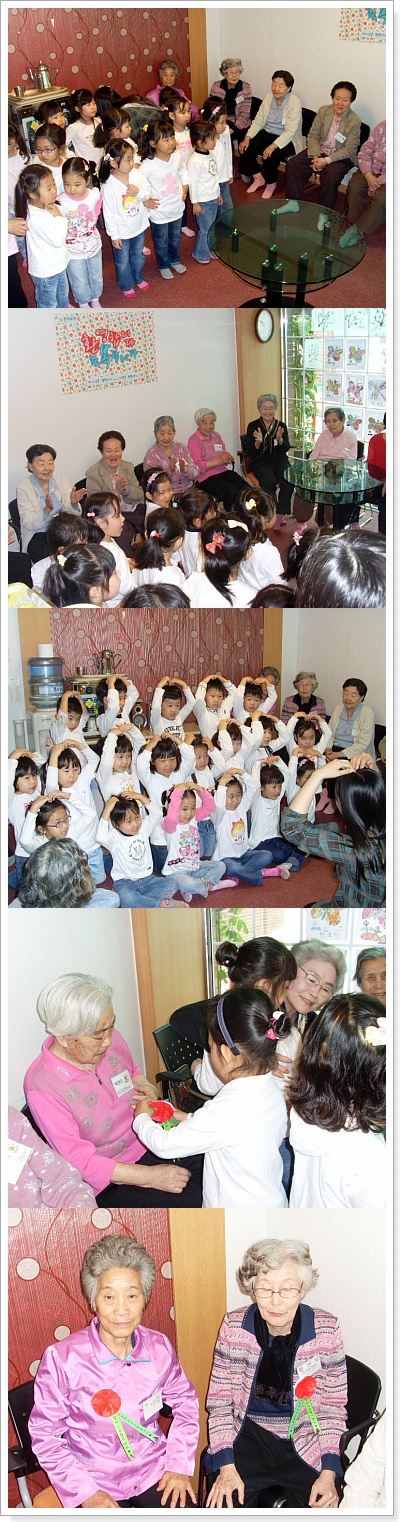 어버이날을 맞이하여 어르신들께 꽃을 달아드리고 준비한공연을 해주셨습니다.