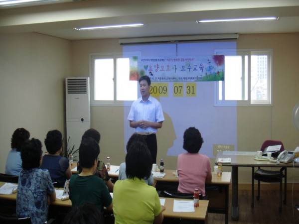 2009년 7월31일 마포구사회복지협의회 지원사업(2009 살기 좋은 마포를 위한 복지프로그램 지원사업)과 관련하여 요양보호사 보수교육 "노인복지 철학"을 실시하였습니다.