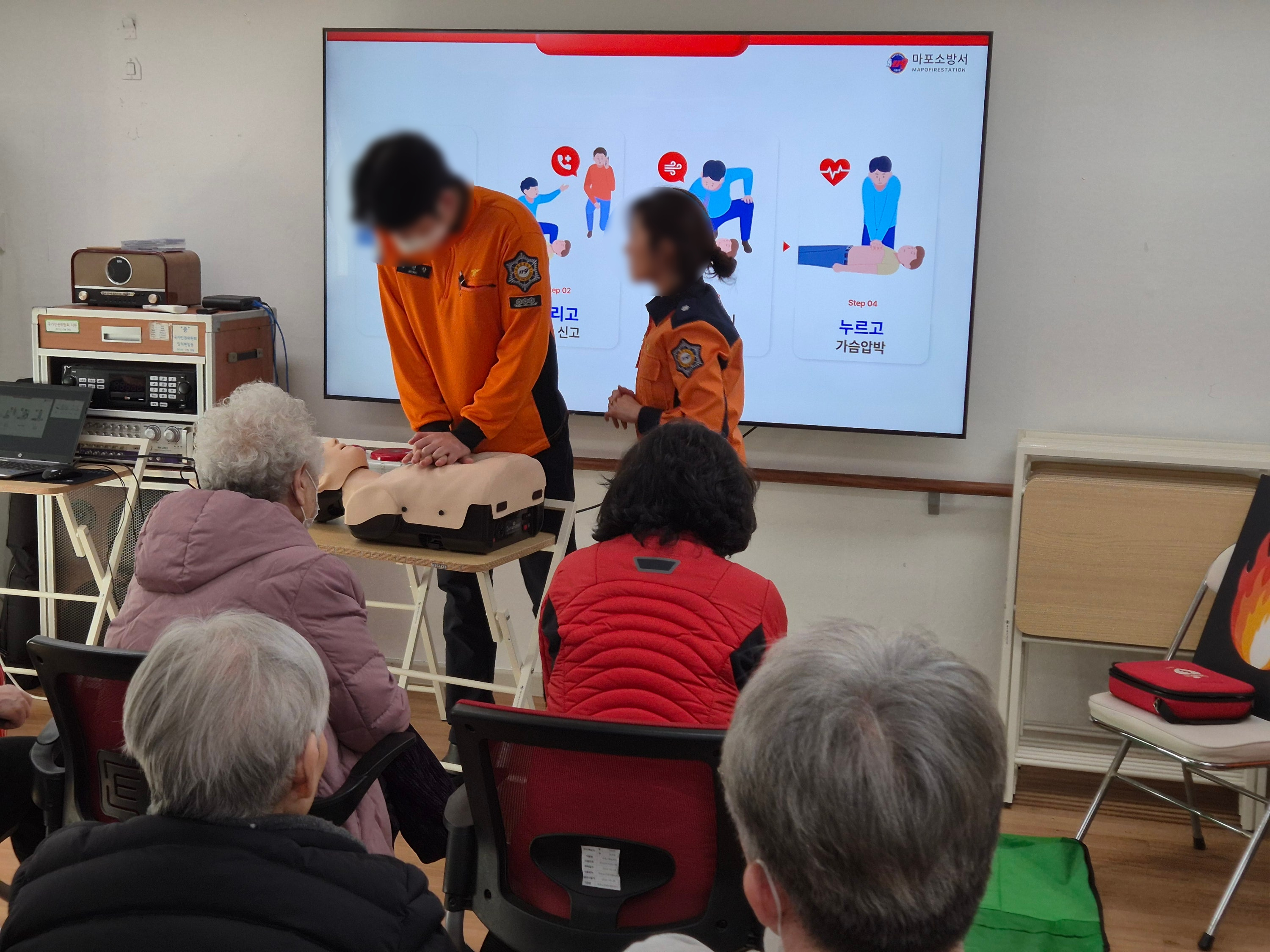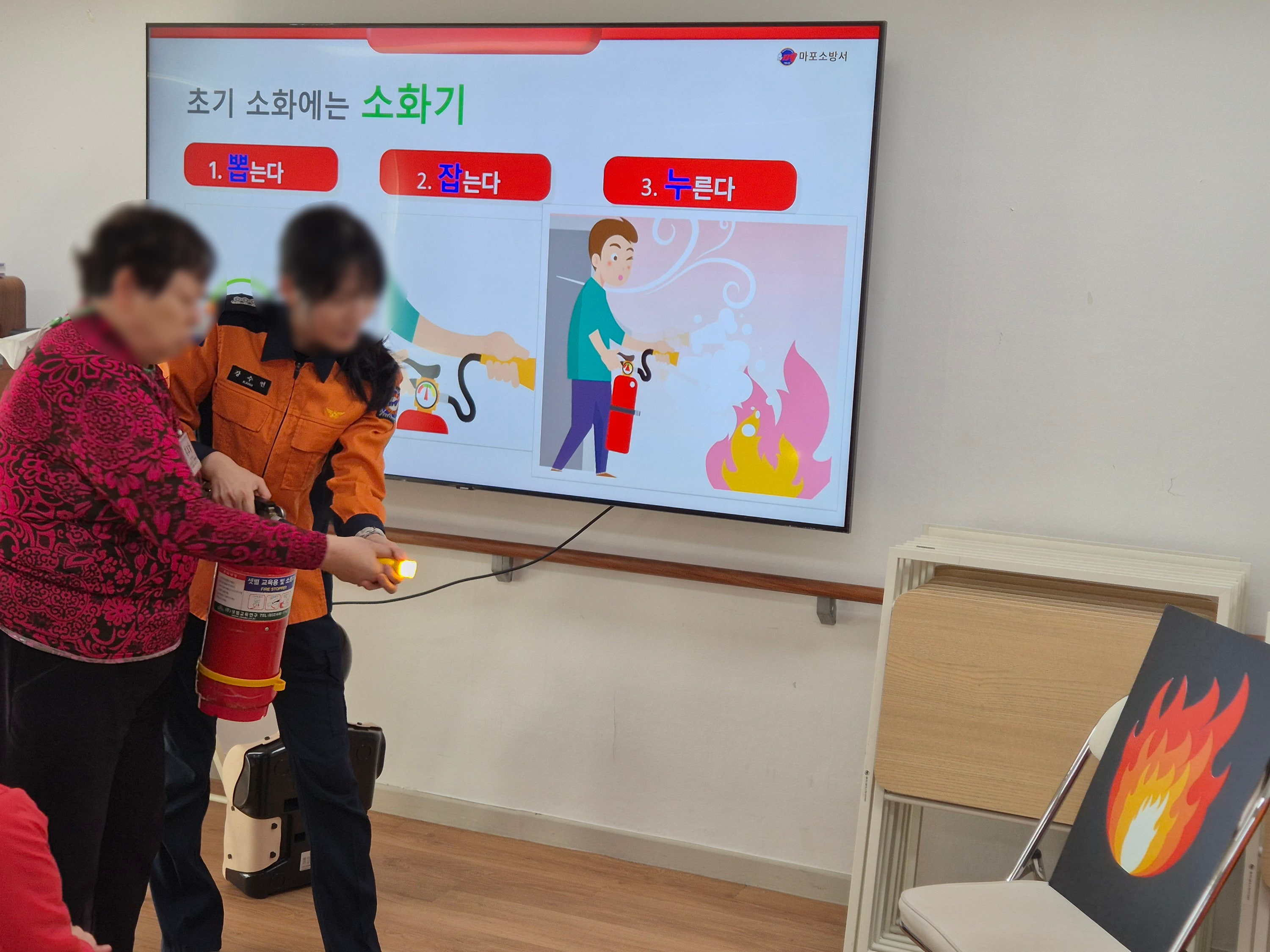 내용: 마포소방서를 통해 소방안전교육, 소화기 사용법, 심폐소생술, 대피훈련을 진행했습니다.