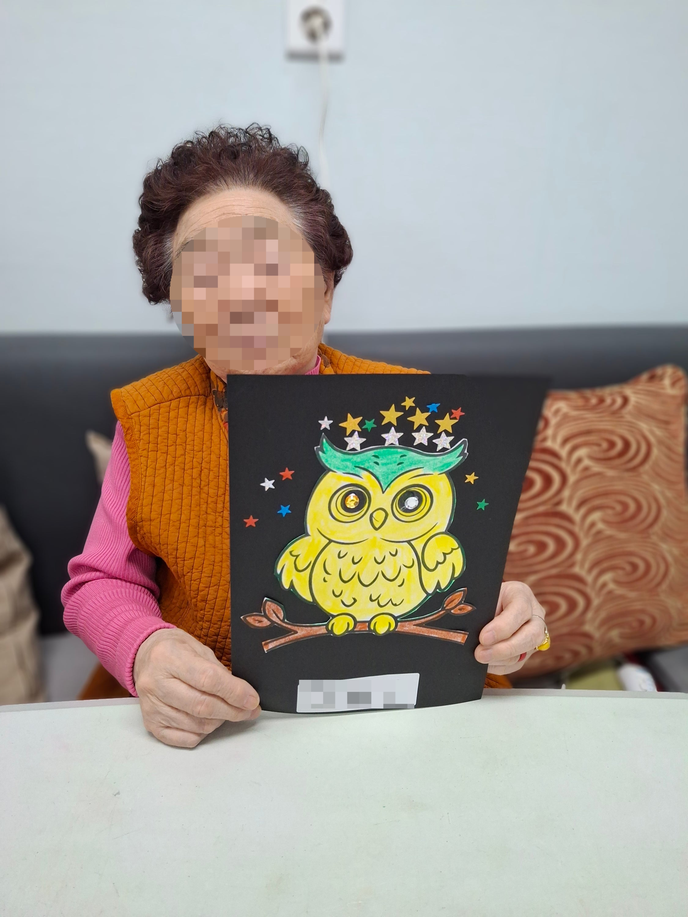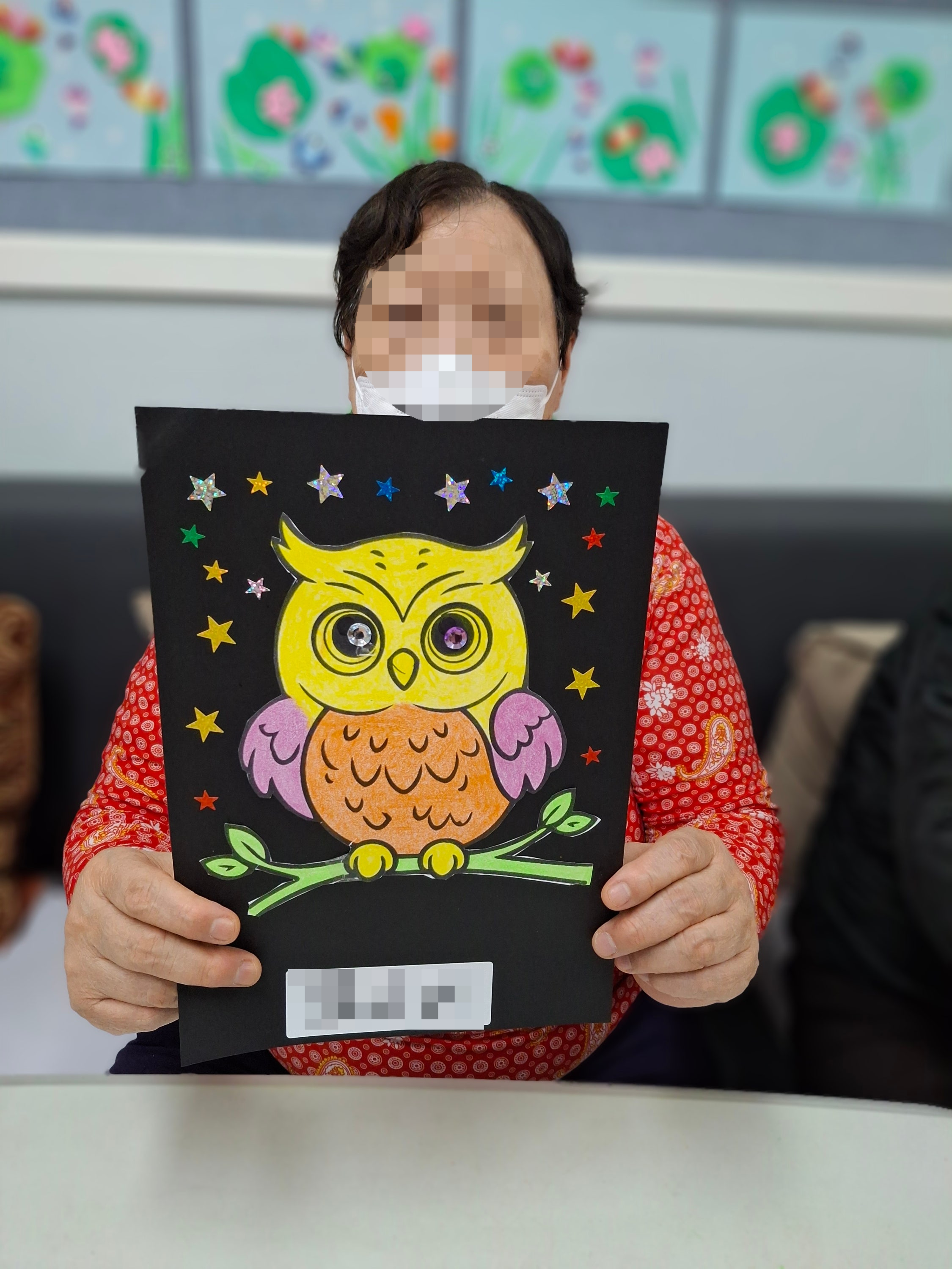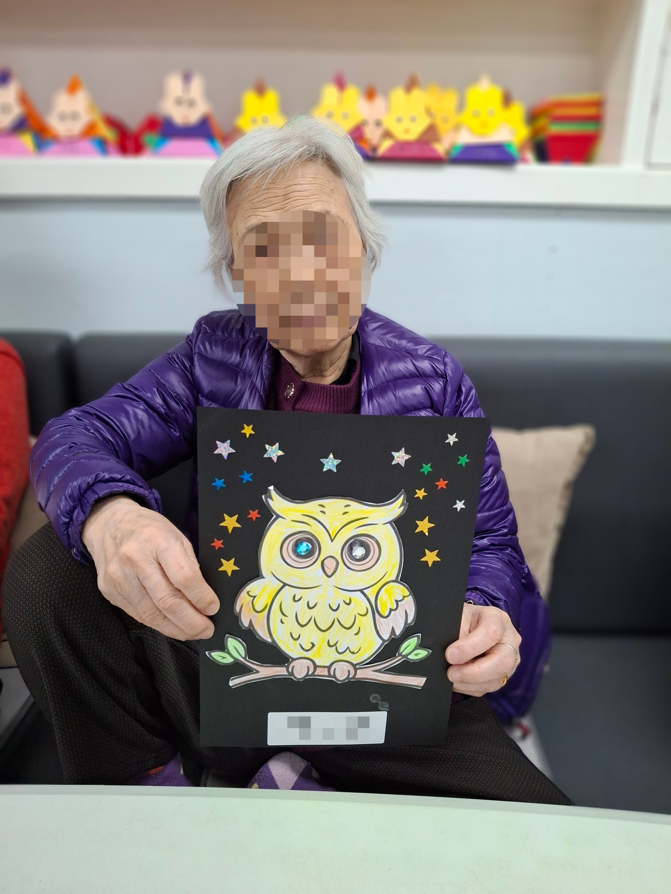 내용: 야간 이용 어르신들과 부엉이 만들기를 진행했습니다.