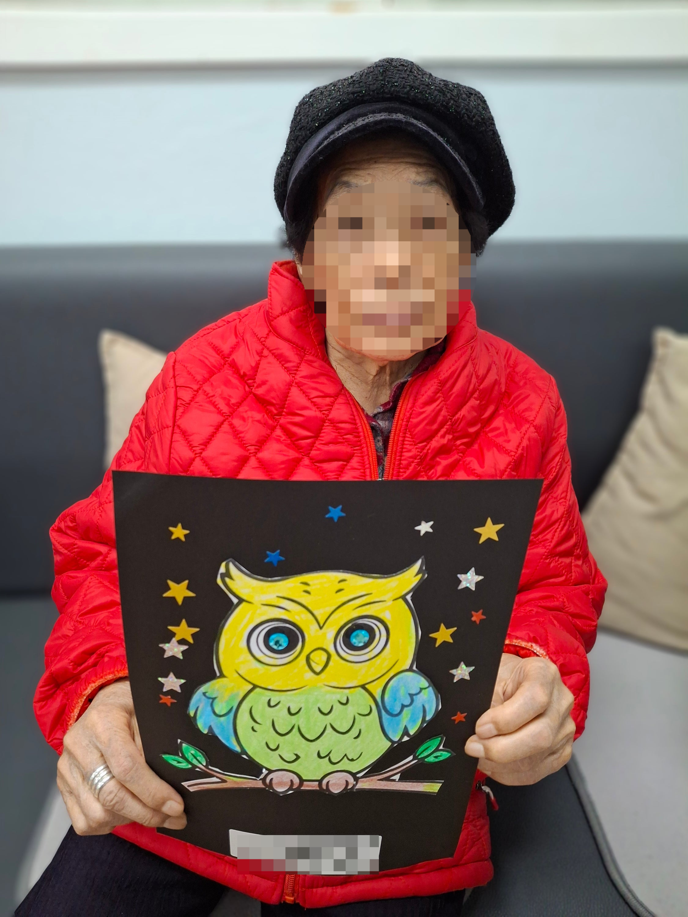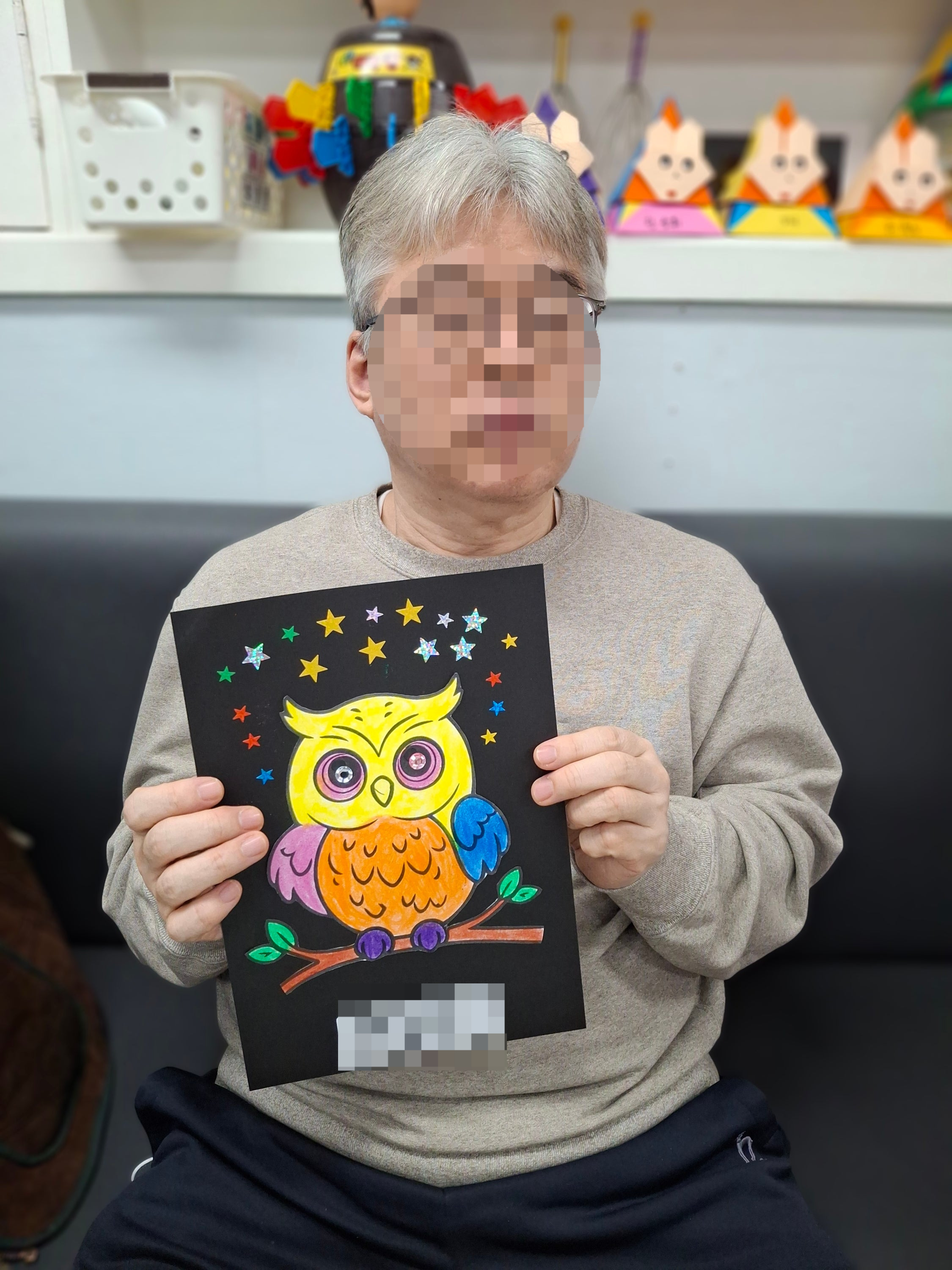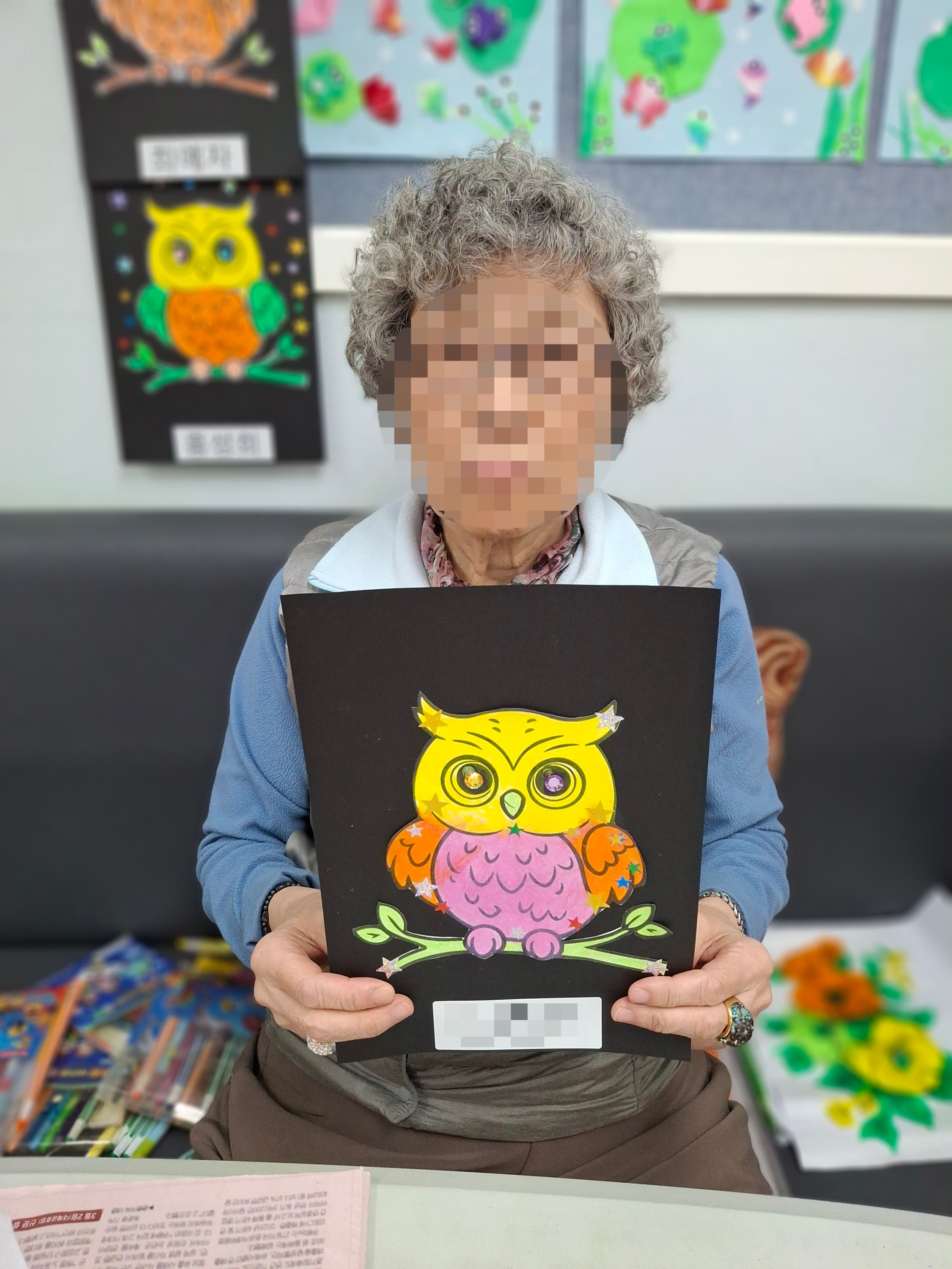 내용: 야간 이용 어르신들과 부엉이 만들기를 진행했습니다.