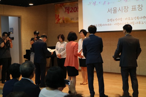 제20회 노인의 날 기념 모범노인시설 서울시장 표창장 수상