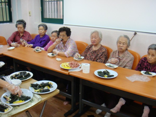만든 김밥은 서로 나누어드시는 정겨운 시간이였습니다.