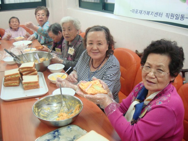 샌드위치를 만들며 흐뭇한 어르신들~^.^