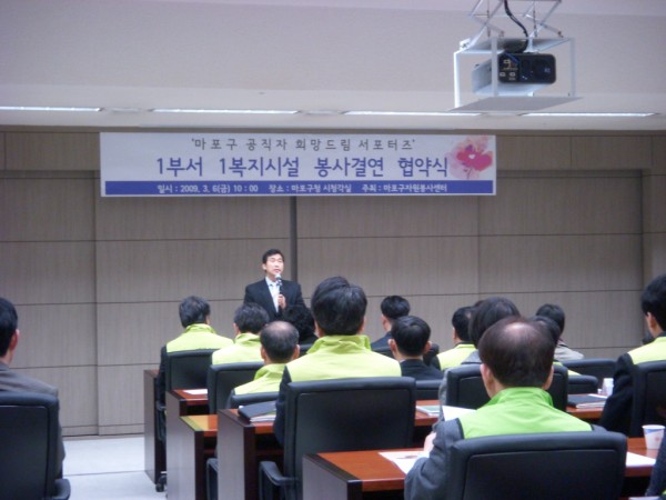 마포구청 건설관리과 임직원과 1:1봉사결연협약을 맺었습니다.
