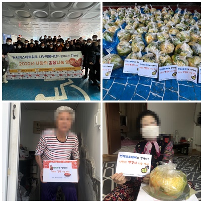 W서비스네트워크, 네이버 해피빈, 현대오토에버의 후원을 받아 사랑의 김장나눔 행사가 진행되었습니다.