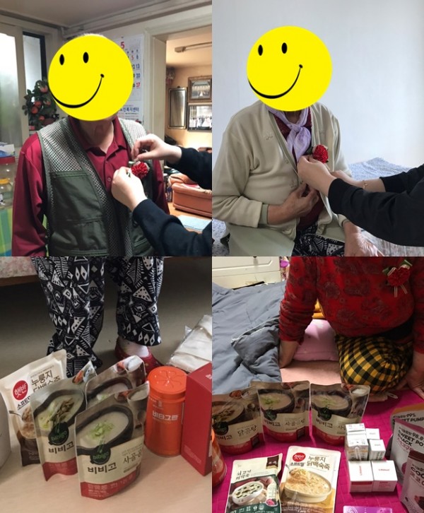 올해에도 어버이날 주간을 설정하여 5월 2일(화)~8일(월) 4일간 담당 직원들이 직접 어르신 댁에 방문하여 어버이날을 기념해드렸습니다.