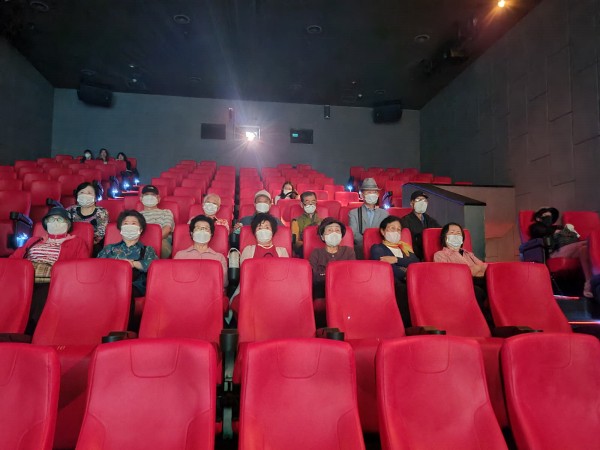 기다리던 첫 단체 영화관람에 일찍 영화관에 도착한 어르신들의 얼굴엔 웃음이 끊이지 않았습니다.