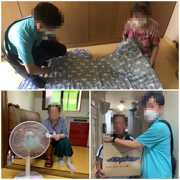 선풍기 46대, 쿨매트 33개, 여름이불 46개를 지원 받았습니다.