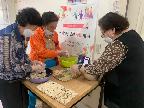 어버이날을 맞이하여 노인맞춤돌봄 대상 어르신들과 함께 쌀강정 만들기 행사를 진행하였습니다.