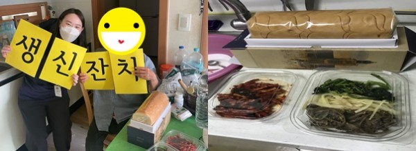 이번 5월에는 롤케잌과 함께 반찬 2종(삼색 나물, 무말랭이 무침)을 함께 전달해드렸습니다.
