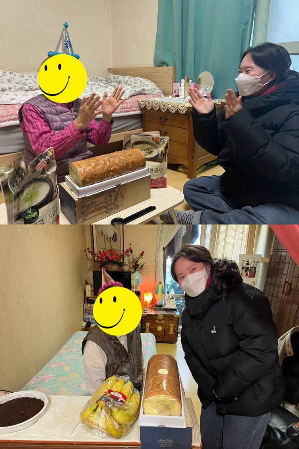 한 어르신께서는 생일까지 챙겨주느냐며 추운 날 이렇게 방문해주는 직원들에게 고마움을 전하셨습니다.