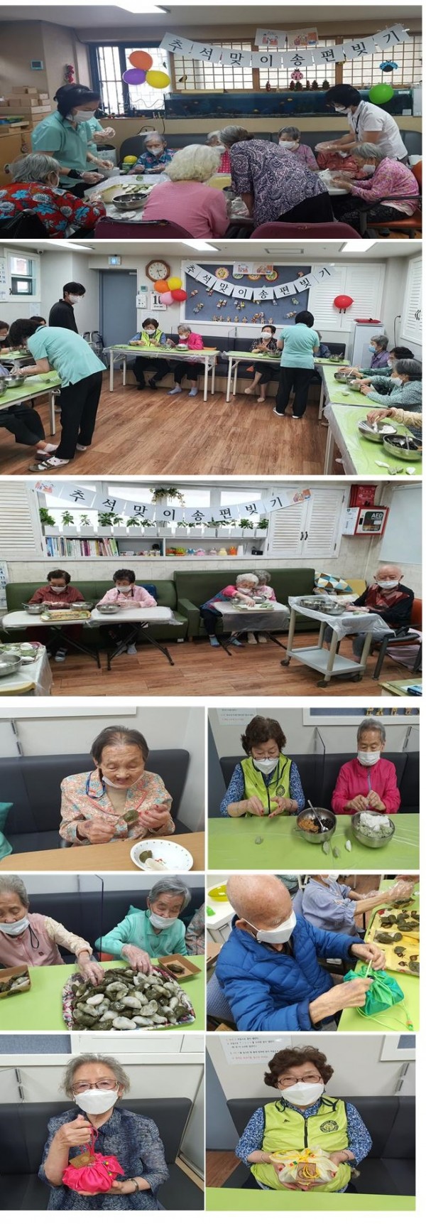 어르신들이 정성 들여 빚으신 송편을 맛있게 드시고 올 추석도 즐겁게 보내시길 바라봅니다~