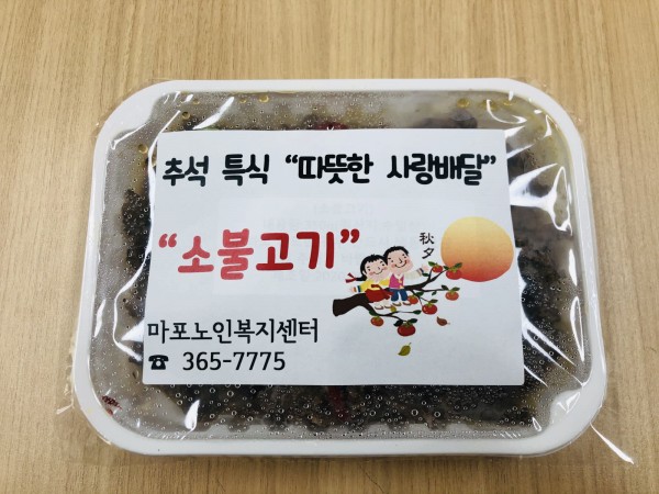 마포노인복지센터는 9월 28일 추석을 맞이하여 저소득 및 홀로 사는 대상 어르신들의 경제적 부담 경감 및 풍성한 밑반찬 지원을 위해 "소불고기"를 제공해드렸습니다!