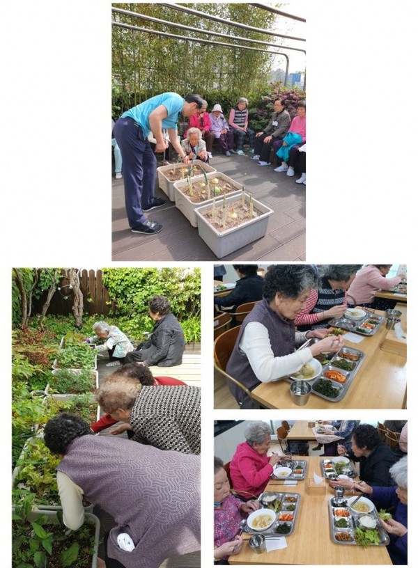 어르신들 지난번 심은 모종이 많이 컸다며 뿌듯해 하십니다. 수확해 보니 한끼 먹을 만큼 양이 됩니다.