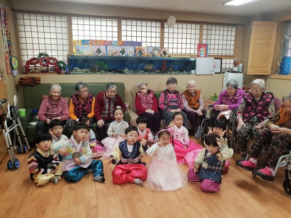 내용 : 설 명절을 맞아 공덕 어린이집 아이들이 요양원을 방문하였습니다.