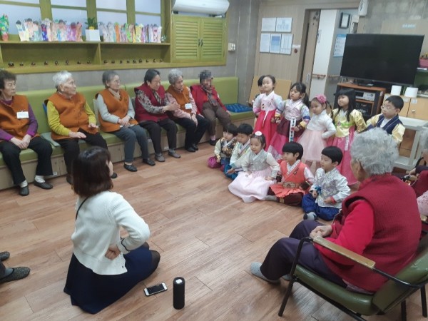 내용 : 설 명절을 맞아 공덕 어린이집 아이들이 데이케어센터를 방문하였습니다.