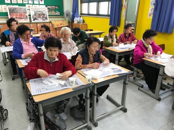 매달 셋째 주 수요일에 있는 미술수업이 돌아왔습니다~ 오늘은 석고붕대를 잘라 따뜻한 물에 녹여 손에 붙이는 활동을 했습니다. 석고붕대를 손에 붙이는 작업이 쉽지 않지만 포기하지 않고 끝까지 작품을 완성시키려는 어르신들을 볼 수 있었습니다. 비록 9명 중에 4명의 어르신이 손 모형을 만들기에 성공하였지만, "실패하더라도 이런 걸 만들어볼 수 있다는 게 어디에요. 이런 건 여기서밖에 할 수 없어요. 너무 재밌었어요."라며 즐거워하시는 어르신들이었습니다~^^