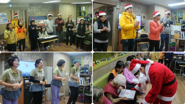 메리 크리스 마스 ~~~!!! 산타클로스로 분장한 선생님의 등장에 어르신들 신기해하며 선물을 드리자 매우 고마워하셨습니다.