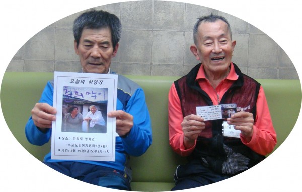 영화에 대한 설명을 하고 티켓을 나눠 드리니 "나도 하나 줘" 하시며 어르신들의 호응이 좋습니다.