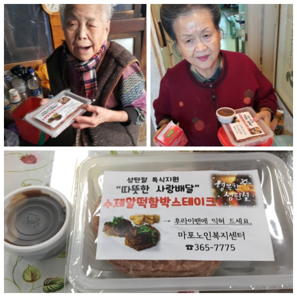성탄절을 맞아 저소득 및 홀로 사는 대상 어르신들의 경제적 부담 경감 및 풍성한 밑반찬 지원을 위해 수제함박스테이크를 지원하였습니다.
